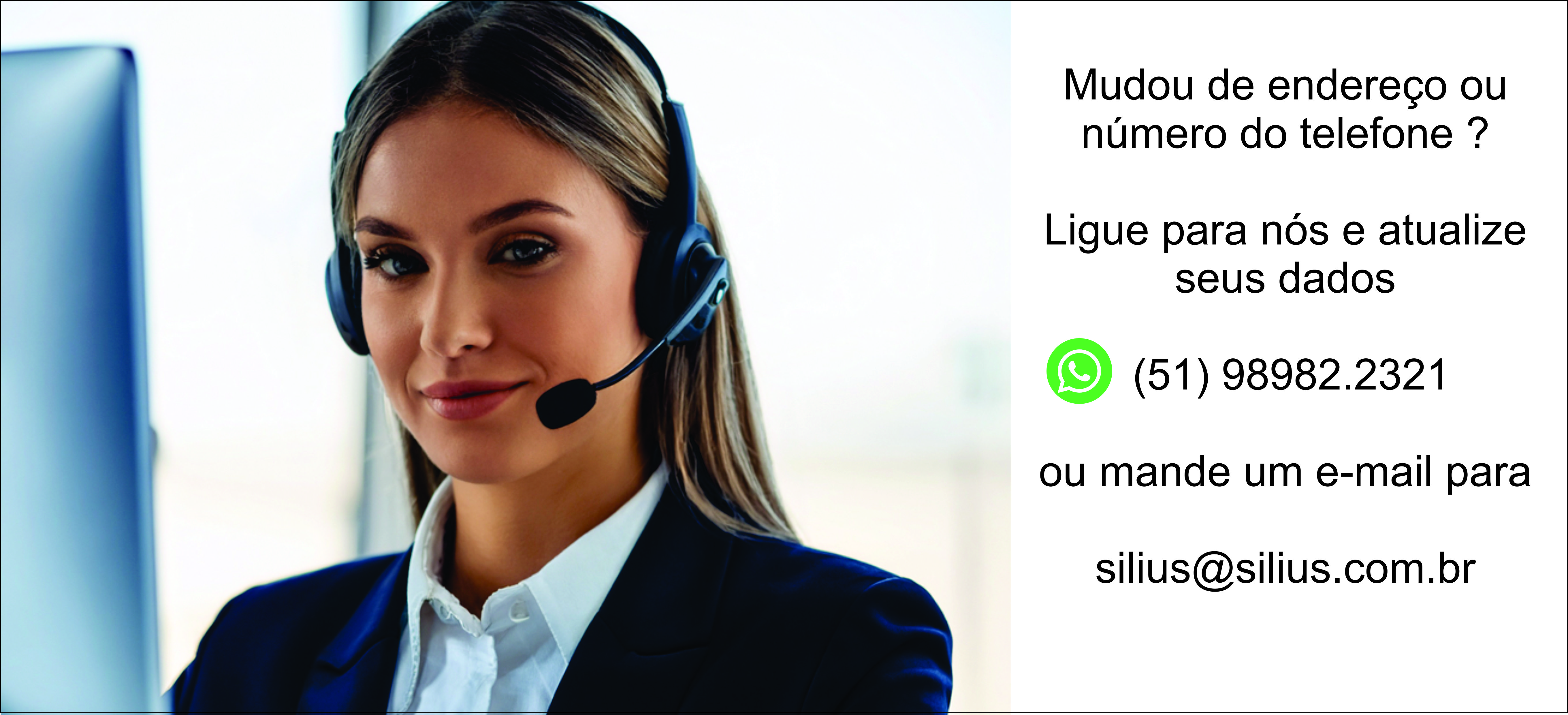 Comunicamos que a Fundação Silius, localizada na Av. Getúlio Vargas n° 1151, sala 603 na Cidade de Porto Alegre/RS, está realizando o Recadastramento Anual Obrigatório de seus  Assistidos e Pensionistas . O procedimento tem como objetivo facilitar a interatividade entre a Fundação e seus Assistidos, atualização de endereço, telefones e e-mails.